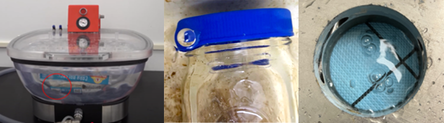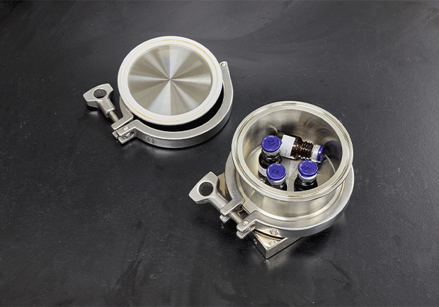 Egress permeation testing consists of sealing the package within an impermeable vessel that purges the inner volume with nitrogen gas to route any permeated moisture to a detector (fig 1). Historically this was done by sealing the sample (using epoxy) within a glass jar onto a brass plate having purges lines. Metal vessels that have reproducible hermetic sealing capability decreased overall testing time while increasing repeatability. This is due to the potential curing variability of the epoxy, and metal having a much lower affinity for moisture versus glass speeding up the outgassing process.