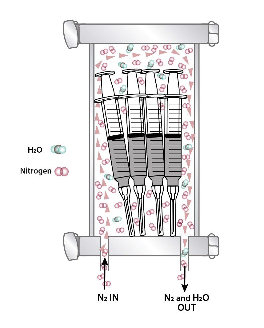Many whole package permeation tests remove the contents of a package prior to evaluation. Measuring oxygen or moisture ingress from the outside environment. Egress testing syringe delivery systems, saline bags, blister packs, and other liquid application pharmaceuticals, uses the product itself to provide the moisture driving force for the most applicable permeation test.