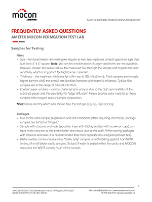 Frequently Asked Questions: AMETEK MOCON Permeation Test Lab