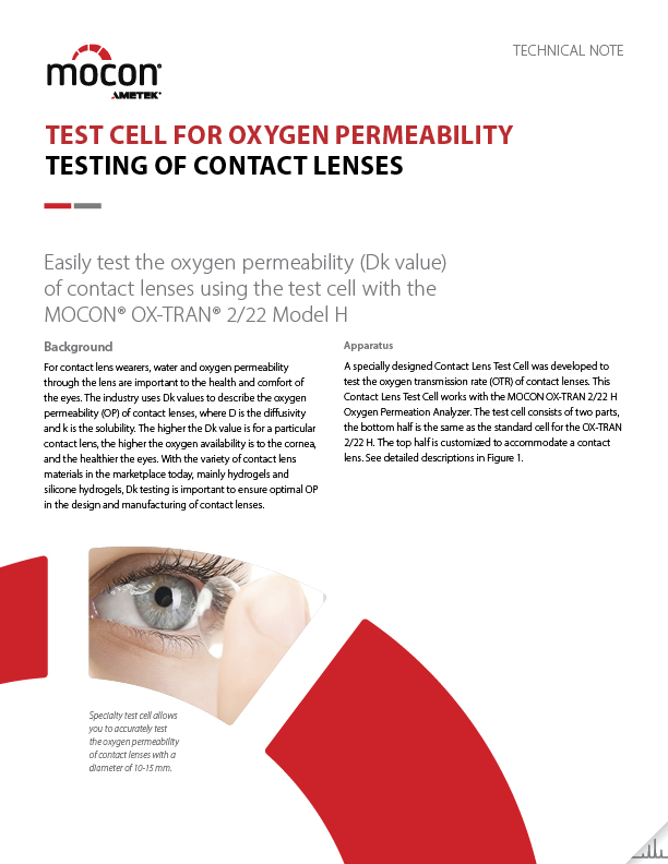 Test Cell For Oxygen Permeability Testing of Contact Lens