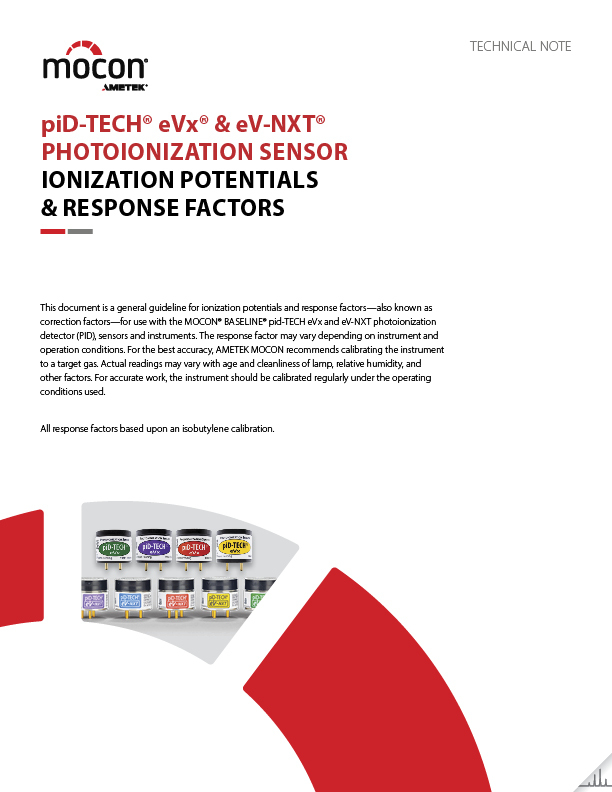 piD-TECH eVx & eV-NXT Photoionization Sensor Ionization Potentials & Response Factors