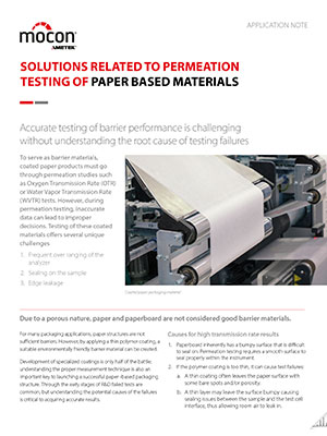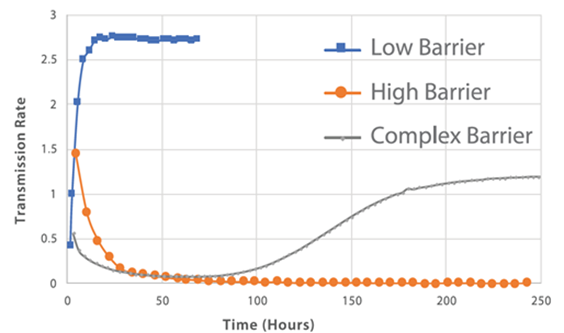 Barrier testing of blister packages can take an exceptionally long time, as both the oxygen and water transmission rates are low, and it is a challenge to quantify using traditional techniques. For WVTR, this has historically been measured through gravimetric (weight gain) studies. For OTR, companies measure the chemical degradation of the product relating to oxidation. As these tests often have exceedingly long test durations - weeks or months, even in accelerated environments - it is often easier and faster to measure OTR and WVTR with high-sensitivity instrumental methods.