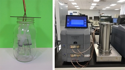 Historically, these have been measured by placing samples within a hermetically sealed system that allows purging of the volume, which routes the egress gas to a detector. This system often consisted of a glass jar or metal cup that enclosed the sample by securing it to a brass plate with epoxy. The plate had holes drilled to accommodate purge lines.