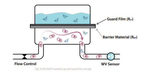 - A long-established classic, this method involves placing a desiccant within a sealed cup where the other side is exposed to humidity; any water vapor that passes through is then collected and weighed over time. The slope of the line is used to calculate the transmission rate of the sample.