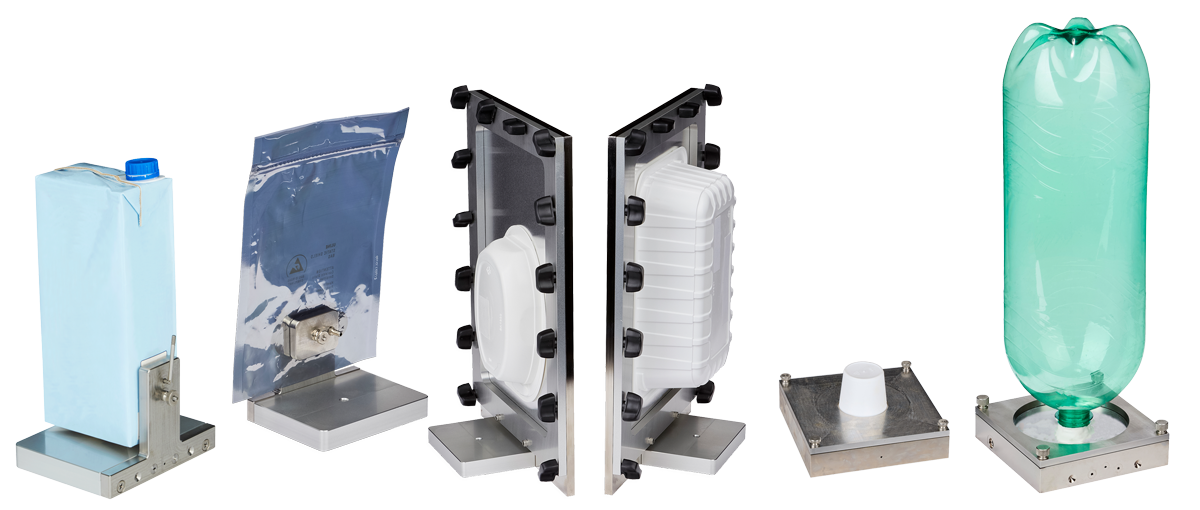 To improve the quality of permeation test results for packages, our engineers created new package mounting fixtures for a range of different package types and a tool-less connection system.