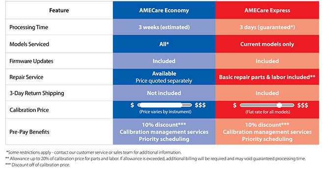 Our AMECare program provides a variety of service solutions designed to maintain your equipment and ensure performance throughout every instrument’s lifecycle. When it comes to calibration and repair for package testing instruments, we know every customer has unique concerns. That’s why we offer multiple options to suit your budget, timeline and industry requirements.