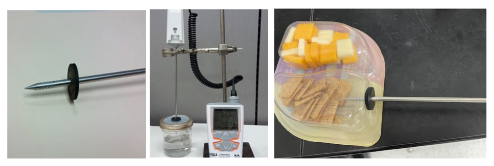 This test method utilizes a Vaisala humidity probe to pierce the wall of a package, placing the %RH sensor within the package and measuring the internal humidity level.